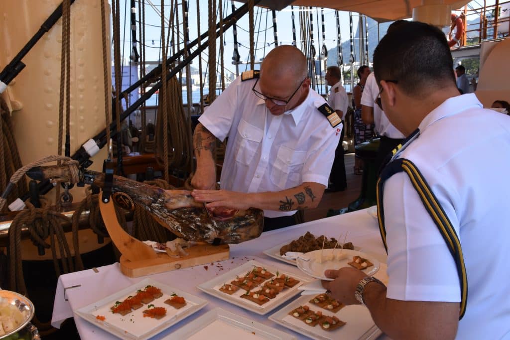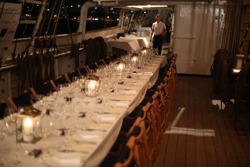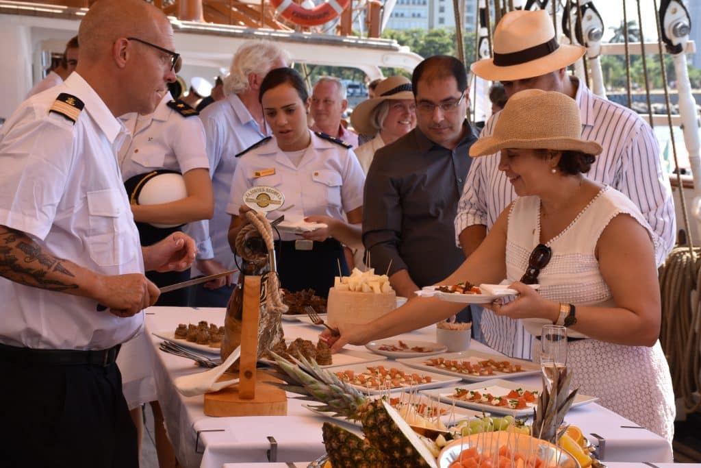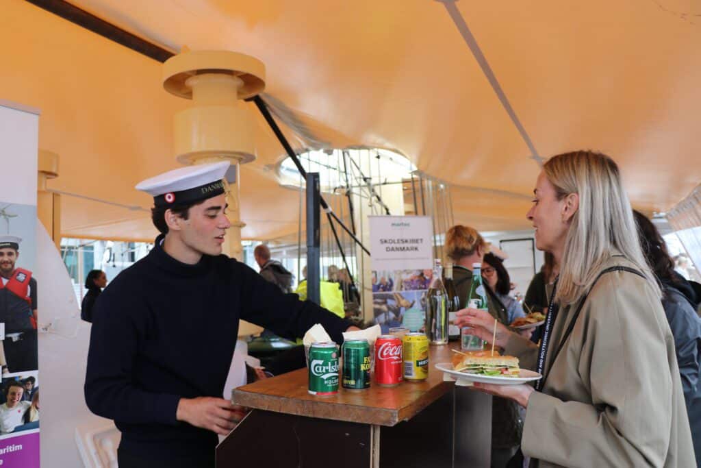 Ved havneophold i forbindelse med større begivender bliver der gerne afholdt receptioner om bord, hvor Skoleskibet fungerer som ambassadør for Danmark og det maritime erhverv. Der kan fx afholdes mindre receptioner på 10-30 personer på poop-dækket eller større begivenheder med siddende middag på dækket med 10-46 personer eller stående reception med op til 150 gæster. Al overskud fra disse begivenheder bruges til forbedringer på skibet og styrkelse af uddannelsen om bord.
