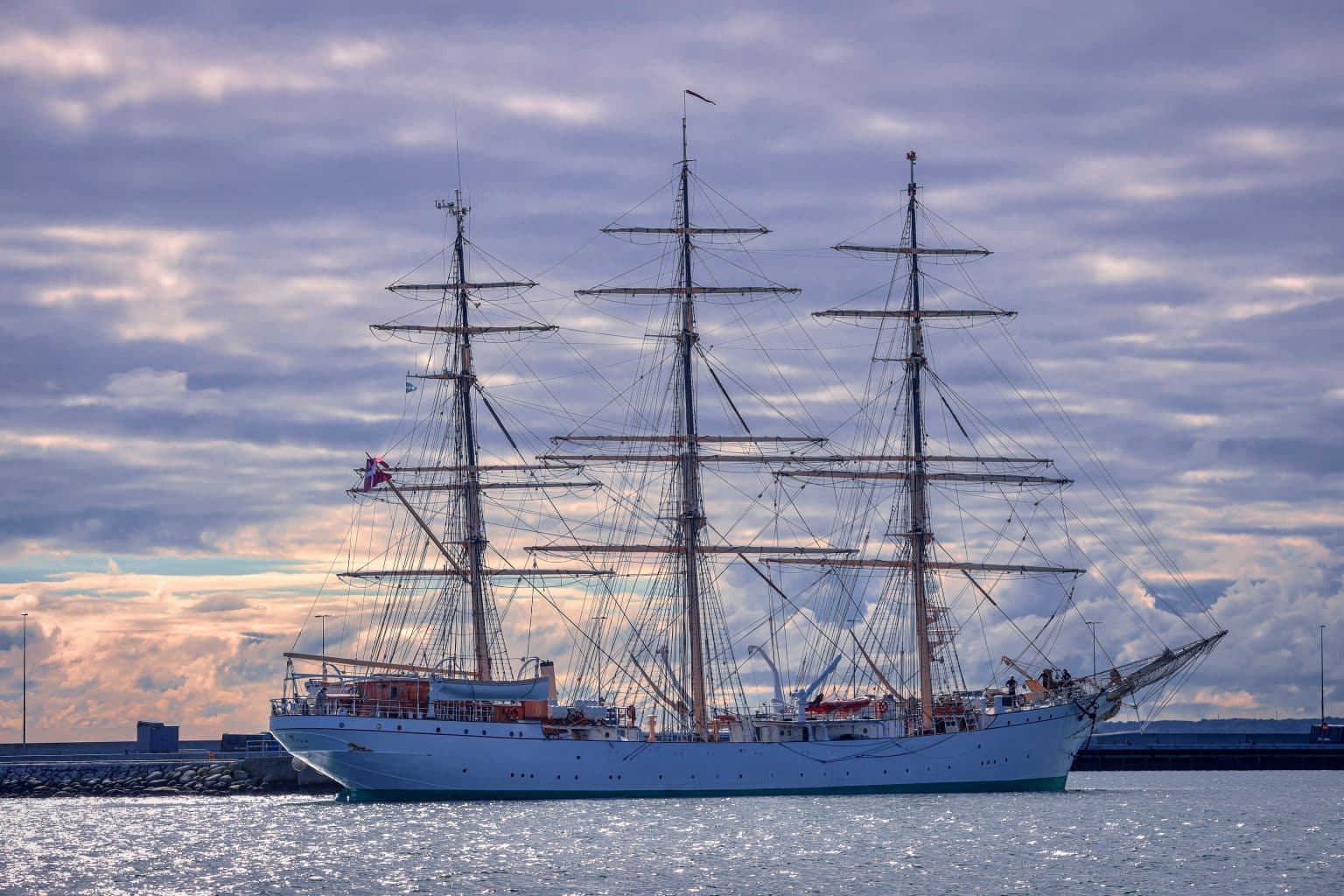 DANMARK er fortoejet med styrbord side langs.